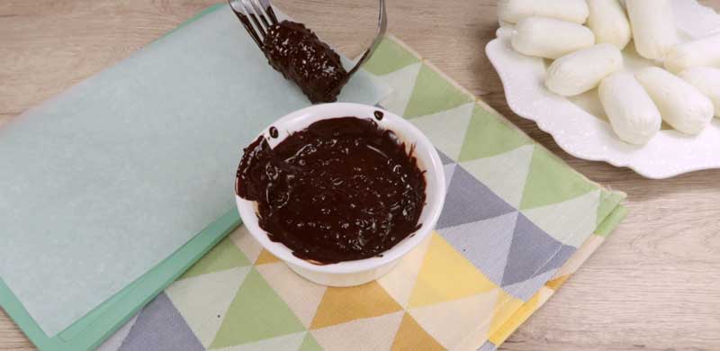 Trece rulourile de brânza în glazură și folosind două furculițe, așează-le pe hârtie de copt, ele se vor desprinde ușor.