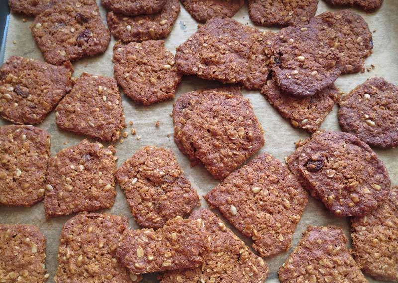 Lăsăm biscuiții să se răcească pe tavă și îi putem consuma imediat. Se păstrează proaspeți timp de 2 săptămâni într-un recipient închis ermetic.