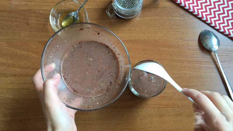 Turnați amestecul într-un pahar și lăsați-l la frigider timp de cel puțin 4 ore sau peste noapte.