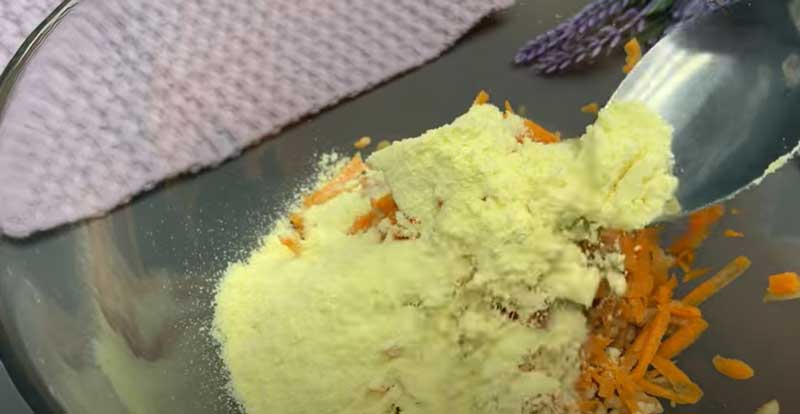 Dați morcovul pe răzătoarea fină pentru a-l face mai suculent. În mod alternativ, îl puteți pre-gati în puțină apă timp de 10 minute dacă doriți să fie mai moale.