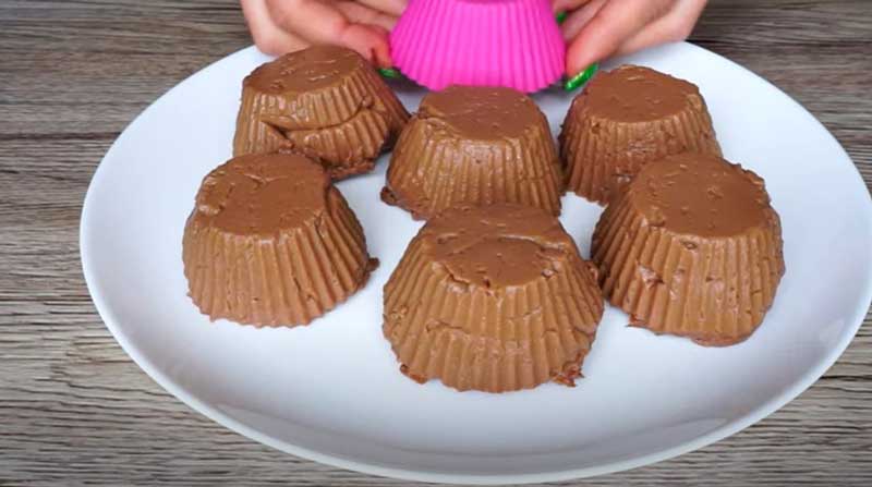 Lăsați desertul să se răcească în frigider timp de aproximativ 30-40 de minute. După răcire, scoateți desertul din forme și puteți începe să gustați.