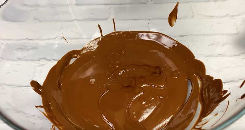 Topiți ciocolata în cuptorul cu microunde sau într-un vas cu apă caldă. Adăugați uleiul de floarea soarelui și amestecați.