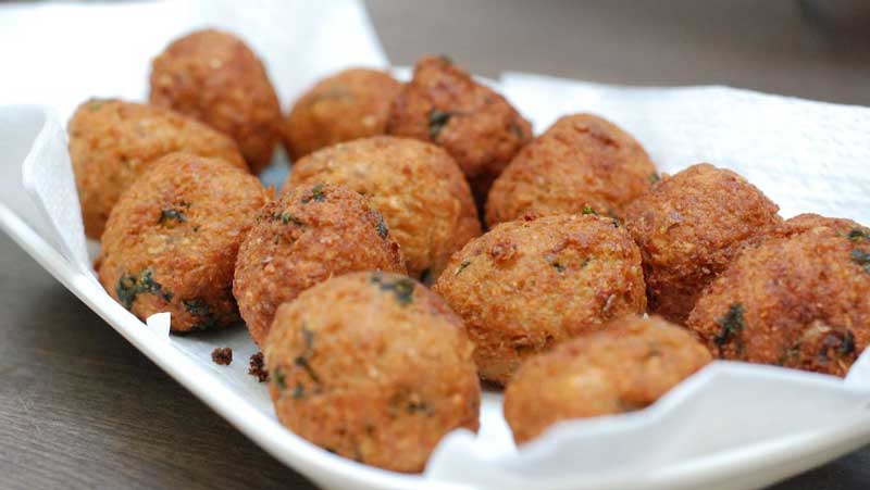 Cu mâinile, se formează bile (dacă amestecul este prea moale, se poate îngroșa cu făină de năut) și se pun din nou la frigider pentru alte 2 ore.