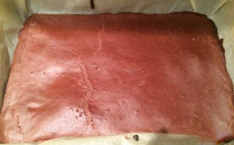Lăsăm blatul să se răcească, apoi îl tăiem pe lungime în două părți egale.