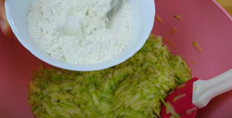 În primul rând, spălați bine dovlecelul și apoi radeți-l pe o răzătoare mare. Stoarceți tot sucul.
