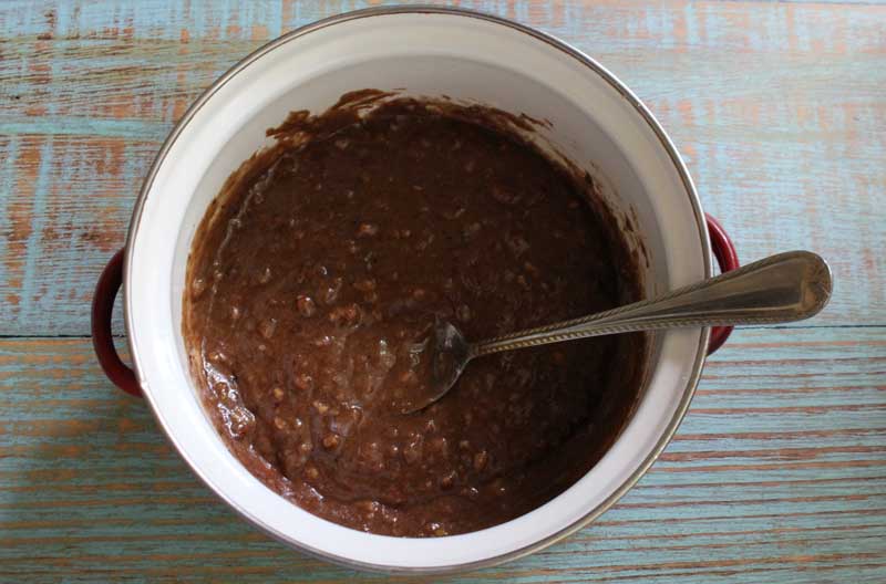 Adaugă nucile mărunțite – poți să le tai mărunt cu un cuțit sau să le zdrobești mai grosier, după preferințe. De asemenea, poți ajusta cantitatea de nuci sau chiar să le omiteți, dacă nu îți plac.