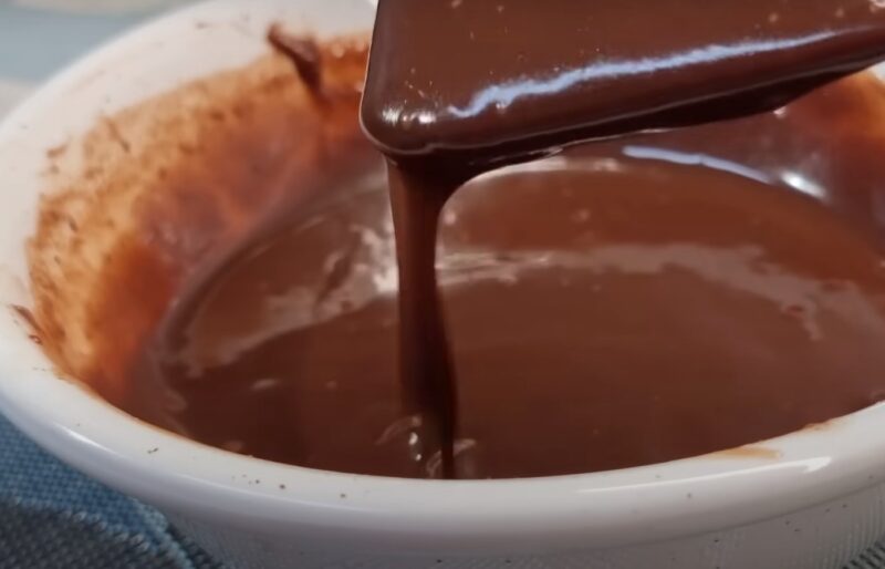 Topiți ciocolata în lapte fierbinte și turnați într-un poș cu ajutorul caruia vom face un model deasupra prajiturii, dupa ce aceasta s-a copt.
