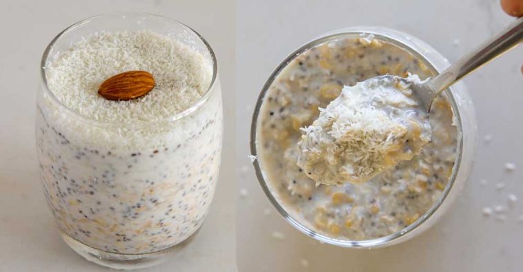Această rețetă de overnight oats în stil Raffaello poate contribui la pierderea în greutate datorită mai multor factori: