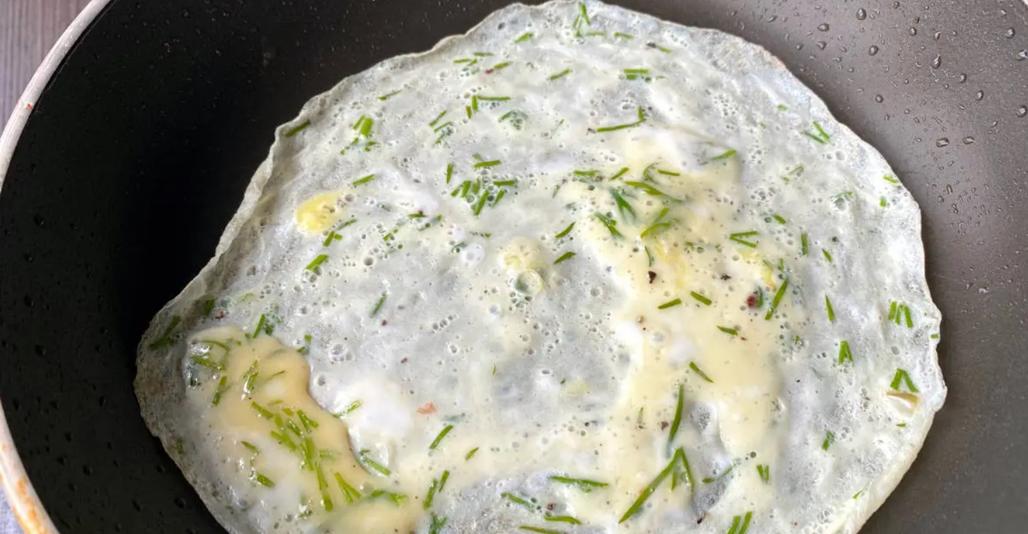 Bat cu o furculiță și prăjesc omlete subțiri pe ambele părți.