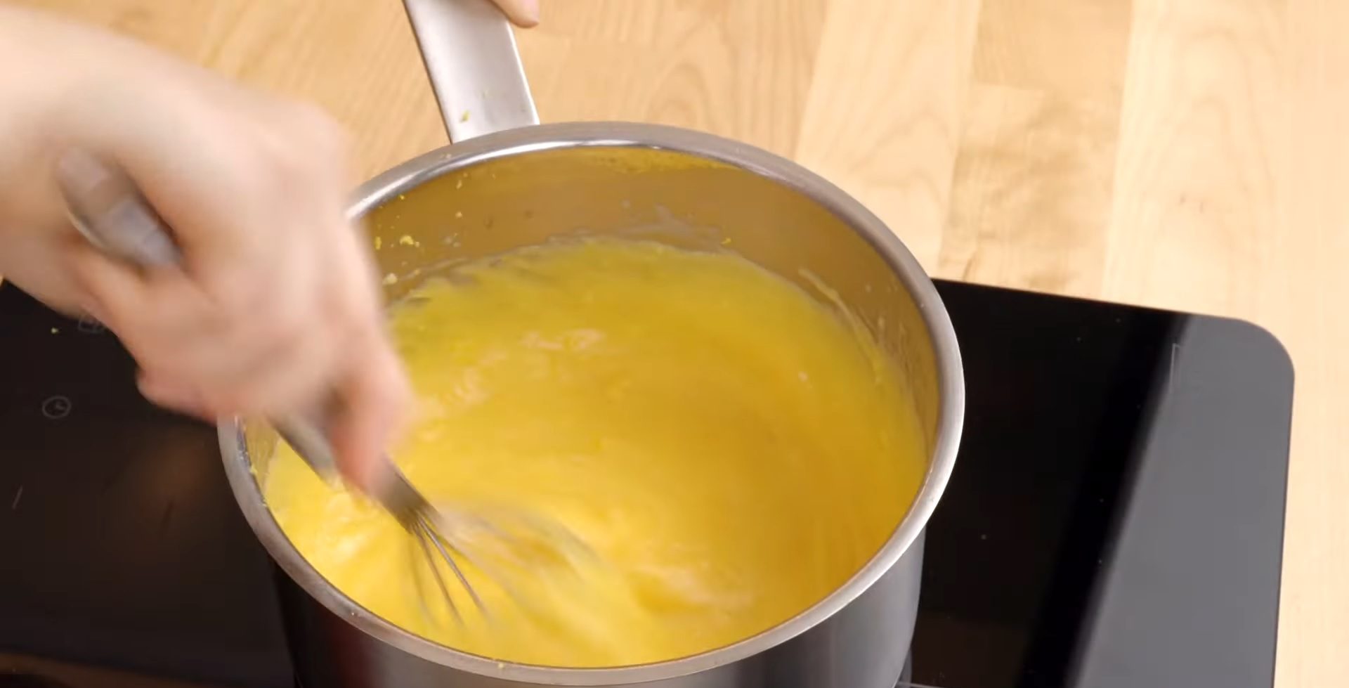 Pentru crema de lămâie, mixăm spumă gălbenușurile împreună cu praful de budincă și zahărul. Mixând continuu, încorporăm treptat și laptele. Punem pe foc și fierbem crema până se îngroașă. Cât este încă caldă, încorporăm în ea coaja și zeama de lămâie. Acoperim suprafața cremei cu folie alimentată și o lăsăm să se răcească complet.